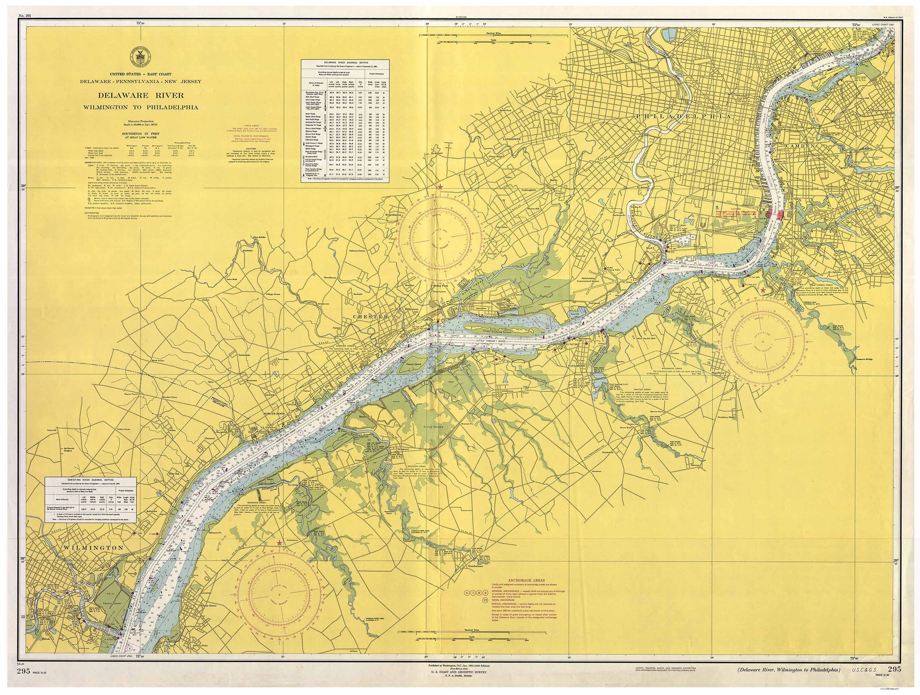 Delaware River Wilmington to Philadelphia 1954 Nautical Map New