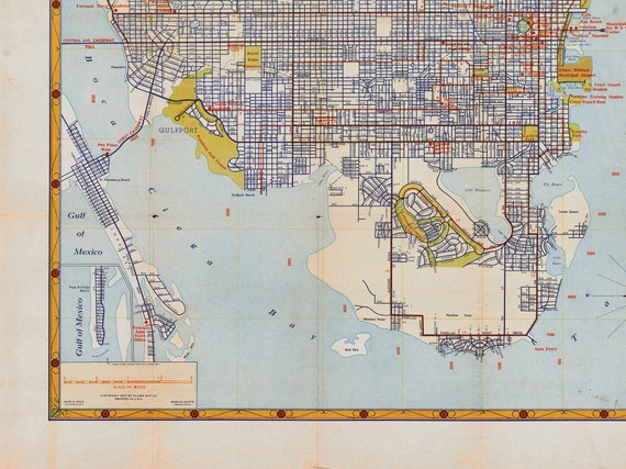 Vintage Map of St. Petersburg Florida, Old St. Petersburg FL, St