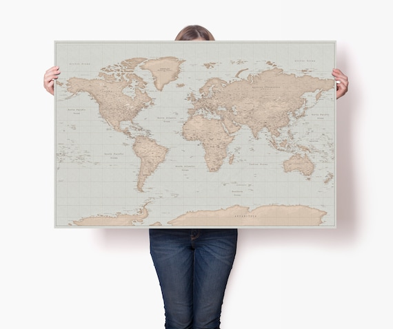 Huge Vintage World Map Poster Personalized Couples Globe Etsy