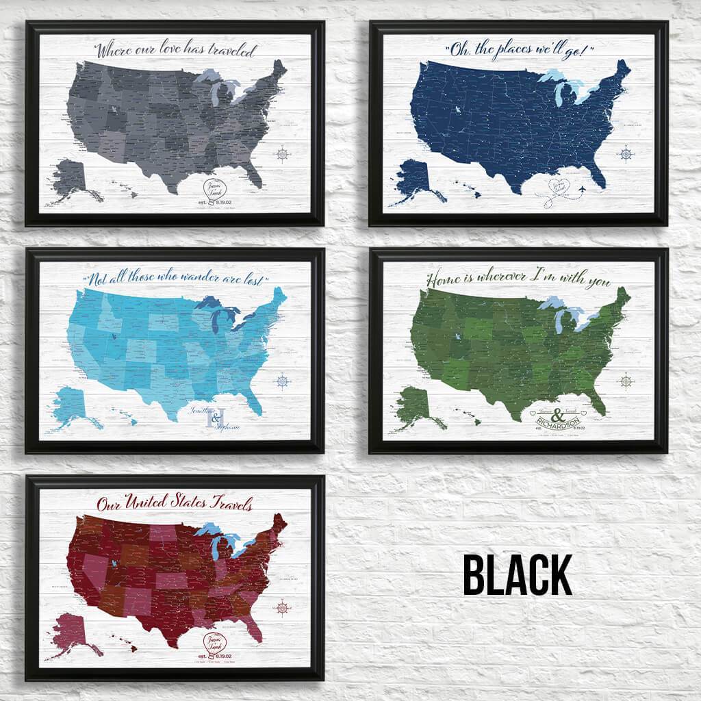 US Anniversary Travel Map | Canvas Map Print | Push Pin Travel Maps