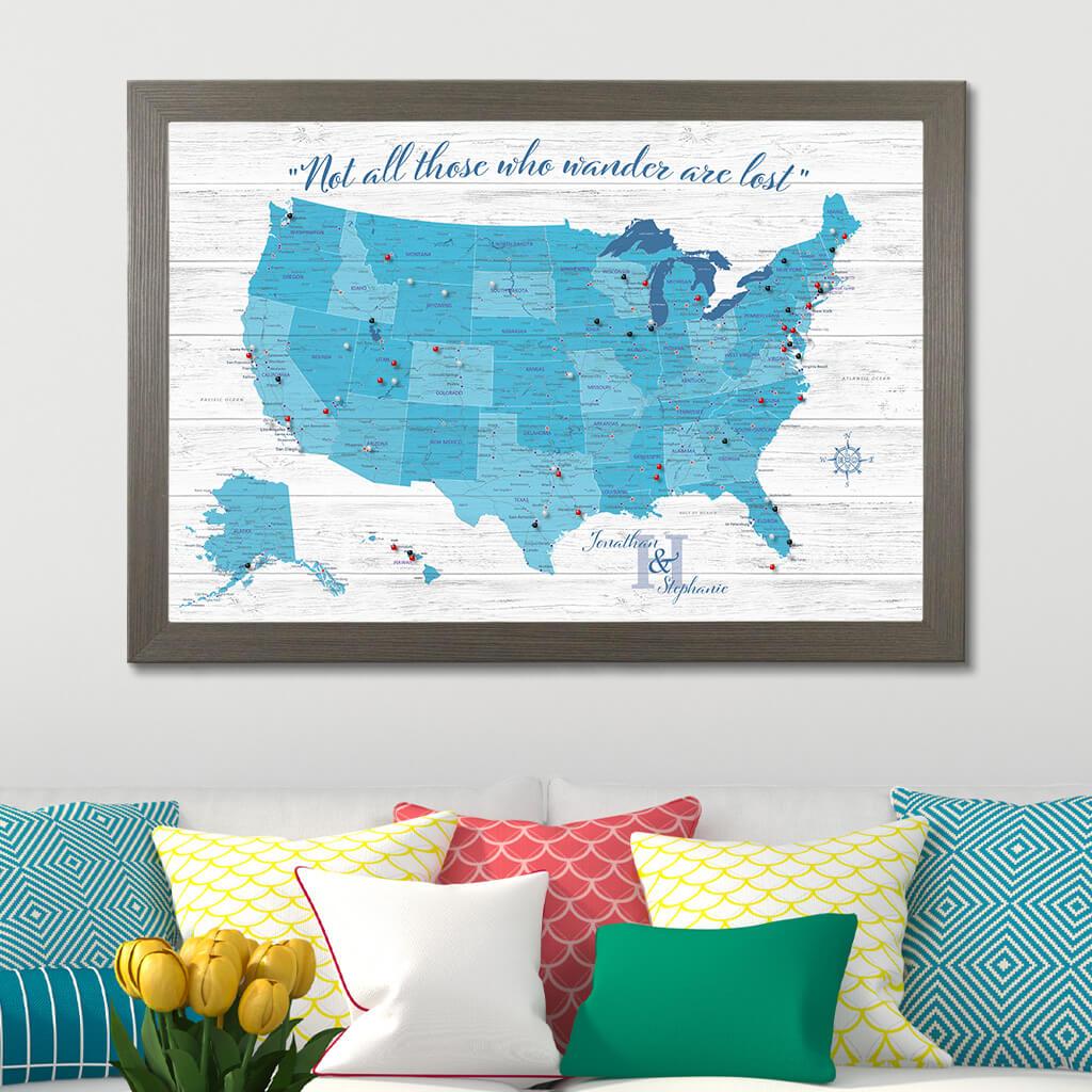 US Anniversary Travel Map | Canvas Map Print | Push Pin Travel Maps